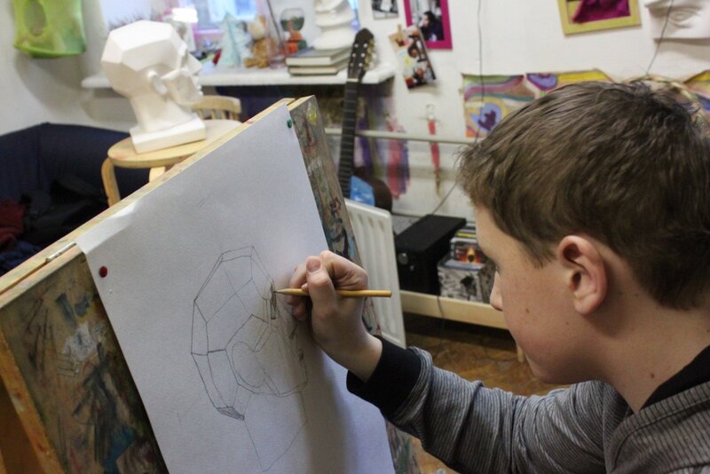 В студии для Вашего удобства мы предоставляем все графические материалы: бумагу для рисования и акварели, карандаши, ластики.
