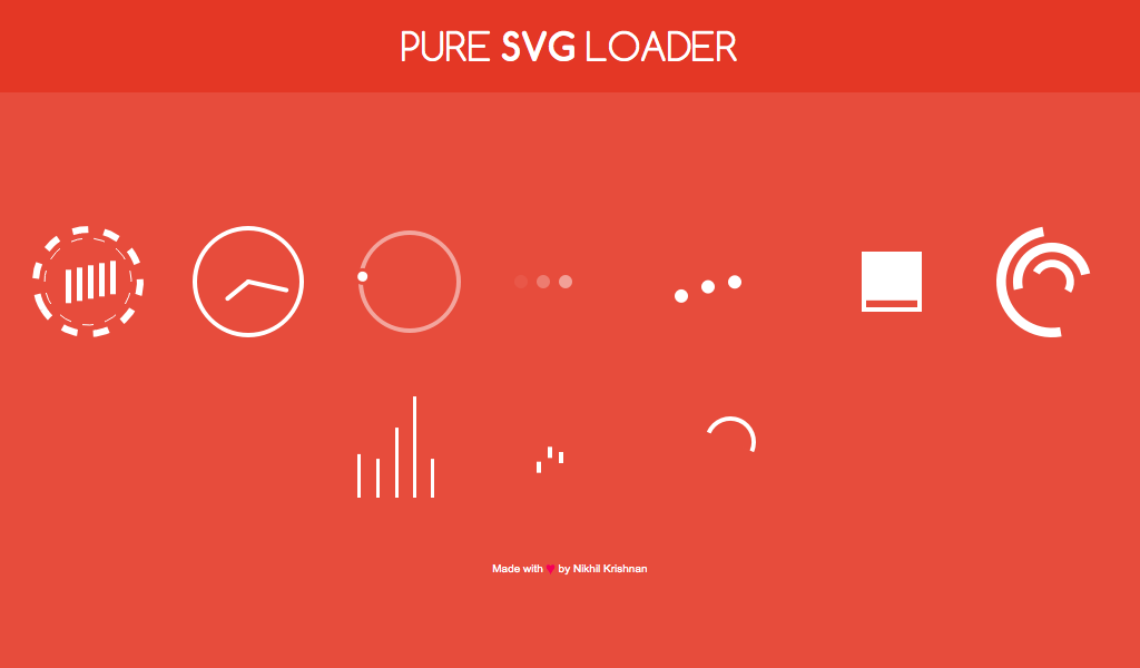 - Некоторые анимации из CSS с открытым исходным кодом. Используется куратор анимации загрузки Whirl, созданный Джей Томпкинсом.