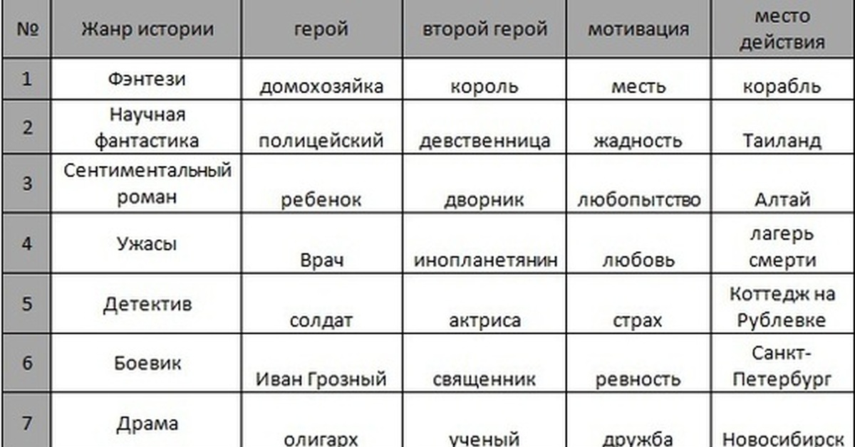 Чтобы найти еще больше идей и несколько дополнительных вариантов, не забудь также заглянуть в Генератор сюжетов на The Story Shack.