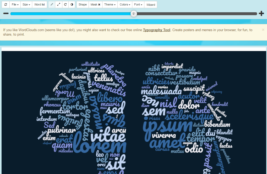 По многочисленным просьбам я добавил небольшую галочку в опции для отображения ваших облаков слов на весь экран. Это должно немного упростить задачу, если вы делаете снимки экрана или печатаете.