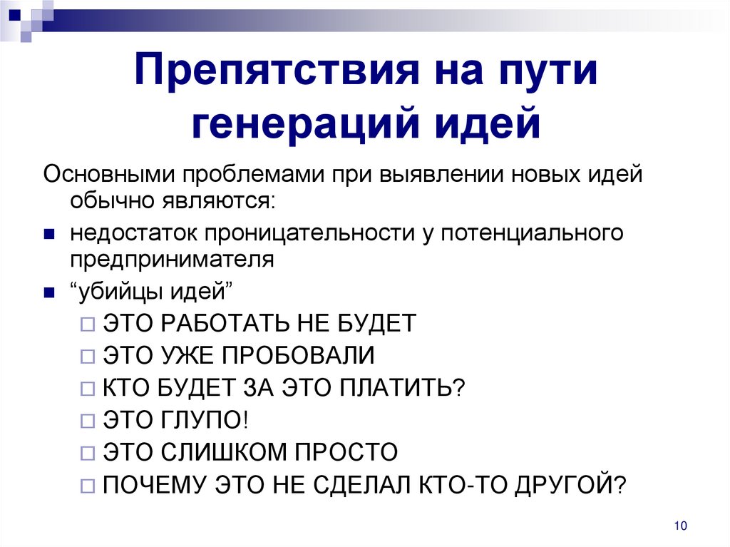 Поскольку существует два типа проблем-идей: проблем, и решений, подходов, вам следует сначала уточнить, хотите ли вы определить проблемы или разработать для них потенциальные решения .