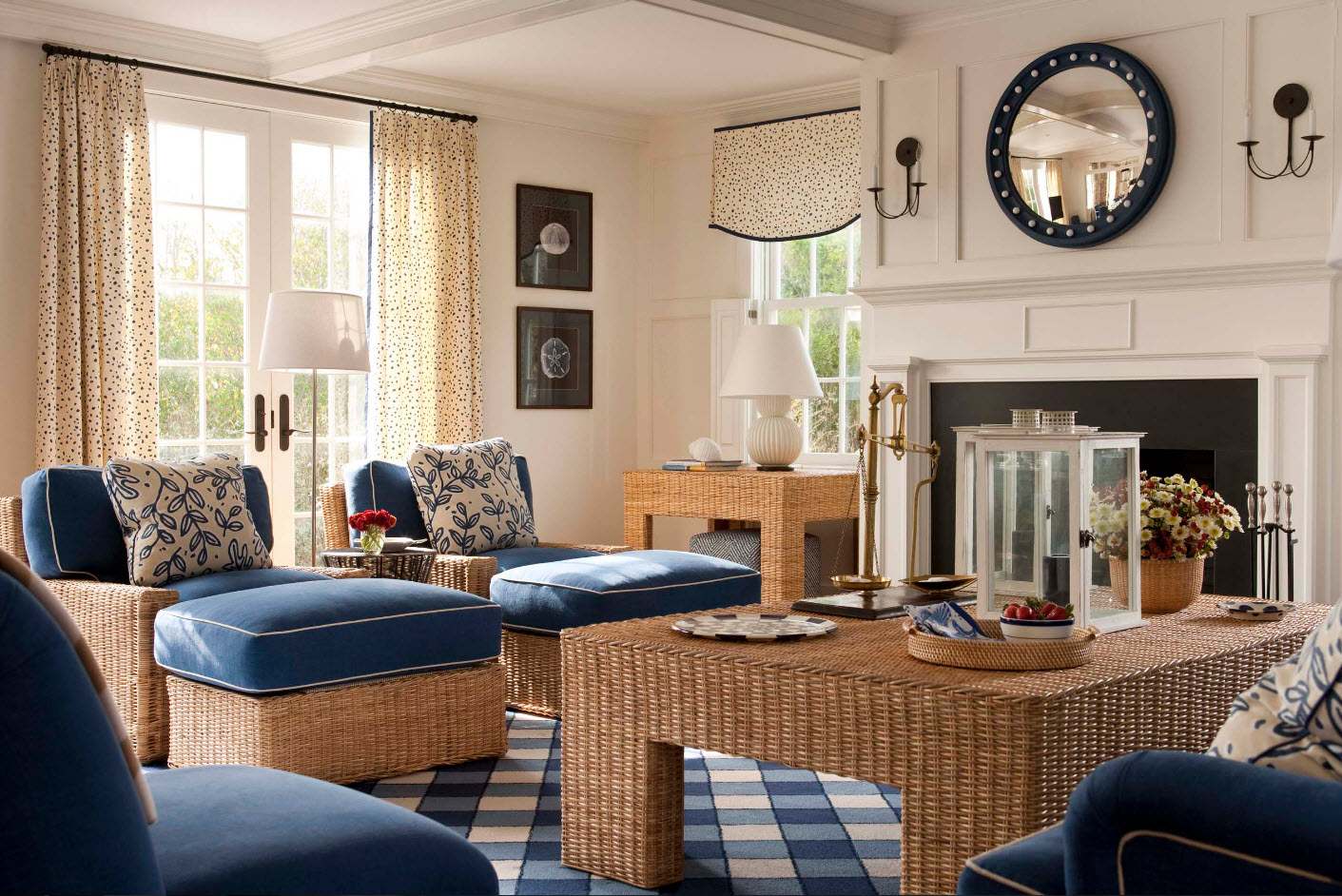 Голубой невероятно выразителен в текстиле, его часто используют для обивки мягкой мебели. Бежевый тоже подойдёт для этой цели, но здесь важен правильный выбор фона: оттенки стен, пола и других покрытий в комнате не должны сливаться с цветом мебели.