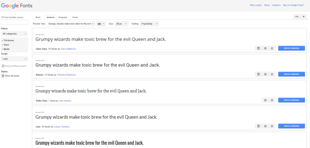 Шрифты Google бесплатны для использования и содержат более 1000 шрифтов на выбор.