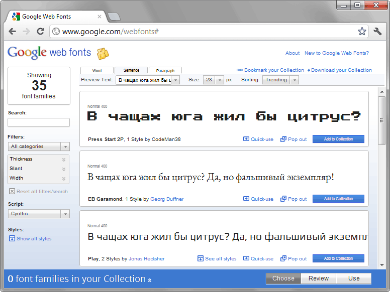 - Шрифты Google также можно загрузить для использования в печати