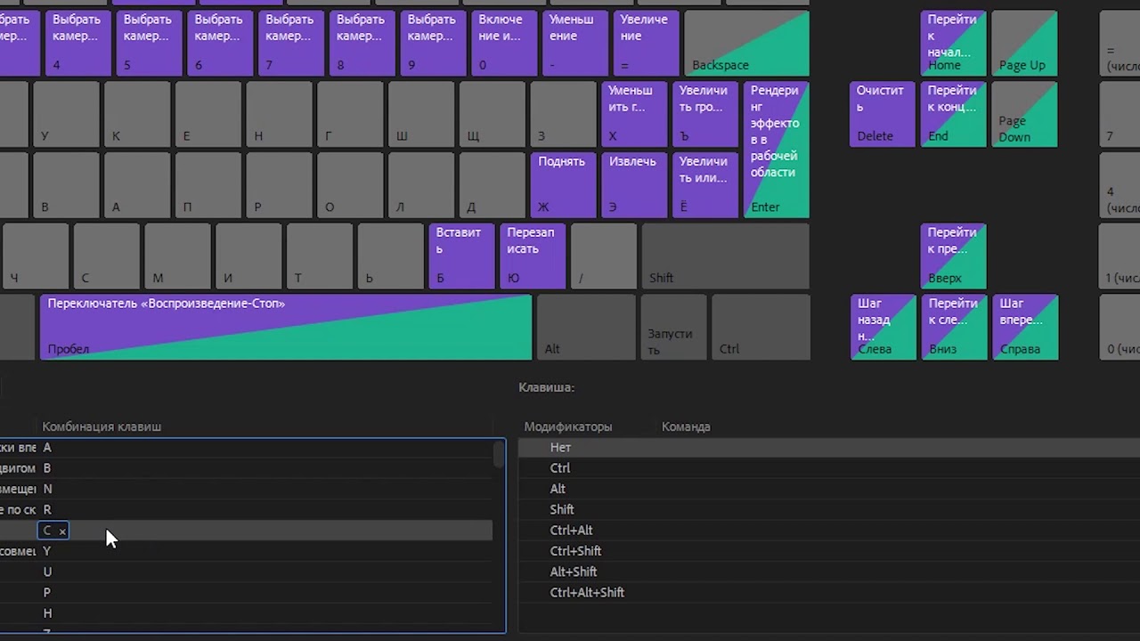 Клавиатура быстрого доступа Premiere