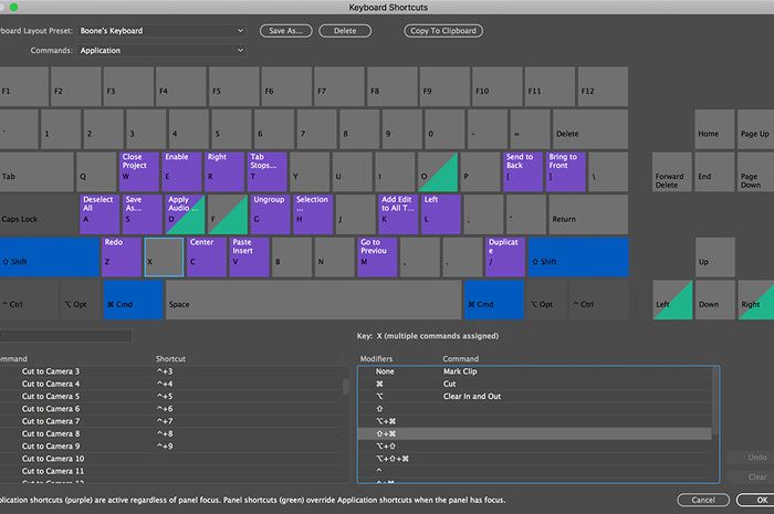 ΠΊΠ»Π°Π²ΠΈΡ, Premiere Pro ΡΠ°ΠΊΠΆΠ΅ ΠΏΠΎΠ·Π²ΠΎΠ»ΡΠ΅Ρ ΡΠΎΠ·Π΄Π°Π²Π°ΡΡ ΠΏΠΎΠ»ΡΠ·ΠΎΠ²Π°ΡΠ΅Π»ΡΡΠΊΠΈΠ΅ ΡΠ°ΡΠΊΠ»Π°Π΄ΠΊΠΈ ΠΊΠ»Π°Π²ΠΈΠ°ΡΡΡΡ.