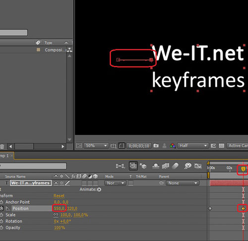0009 U для просмотра всех свойств ключевых кадров для всей композиции.3. Quick Ease to Keyframes