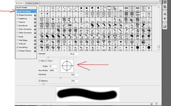[ и ] — уменьшает и увеличивает размер кисти соответственно. При подборе размера кисти можете пользоваться упомянутой раньше комбинацией Ctrl+Z дабы быстро удалять неподходящие «пробы пера».