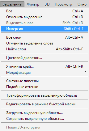 Но сначала необходимо задать первоначальное выделение любым из возможных инструментов, а затем через комбинацию клавиш Shift + Ctrl + I провести инверсию выделенных участков.