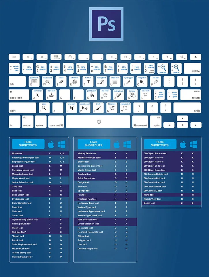 Adobe Photoshop, ΠΊΠ°ΠΊ ΠΈ Π²ΡΠ΅ ΠΎΡΠ½ΠΎΠ²Π½ΡΠ΅ ΠΏΡΠΎΠ³ΡΠ°ΠΌΠΌΡ, ΠΈΠΌΠ΅Π΅Ρ ΠΌΠ½ΠΎΠΆΠ΅ΡΡΠ²ΠΎ ΡΠΎΡΠ΅ΡΠ°Π½ΠΈΠΉ ΠΊΠ»Π°Π²ΠΈΡ Π΄Π»Ρ ΡΡΠΊΠΎΡΠ΅Π½ΠΈΡ ΠΈ ΠΎΠΏΡΠΈΠΌΠΈΠ·Π°ΡΠΈΠΈ Π²Π°ΡΠ΅Π³ΠΎ ΡΠ°Π±ΠΎΡΠ΅Π³ΠΎ ΠΏΡΠΎΡΠ΅ΡΡΠ°.