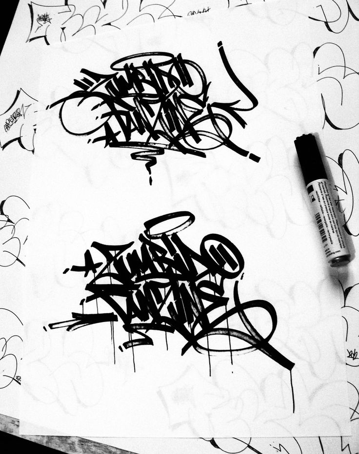 подпись, обычно наносимая перманентным маркером или аэрозольной краской.