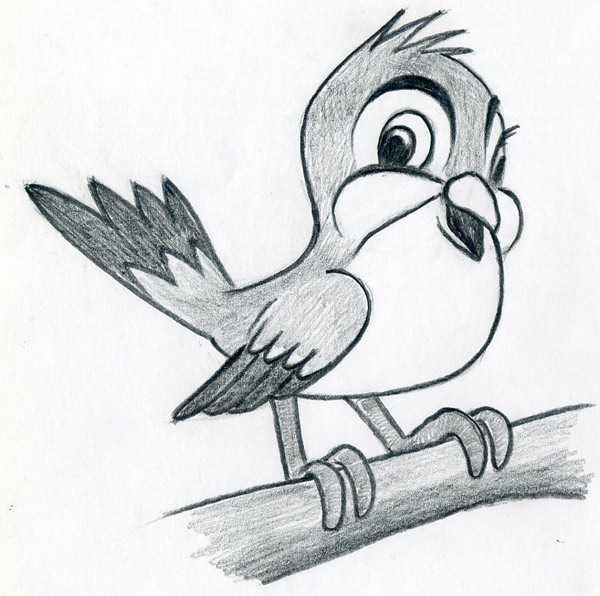 Как нарисовать птицу на ветке карандашом поэтапно?