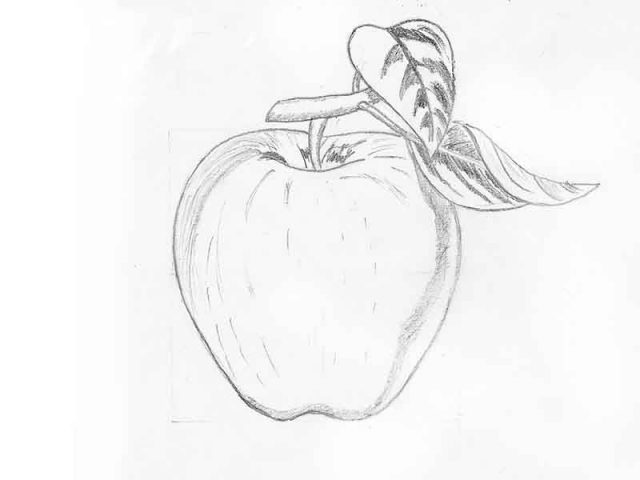 Яблоко — пример простой круглой формы, соответственно, штриховать необходимо по форме шара, свет будет распределяться также по правилам шара. Не забудьте о том, что нижний участок яблока будет темнее, чем собственная тень.