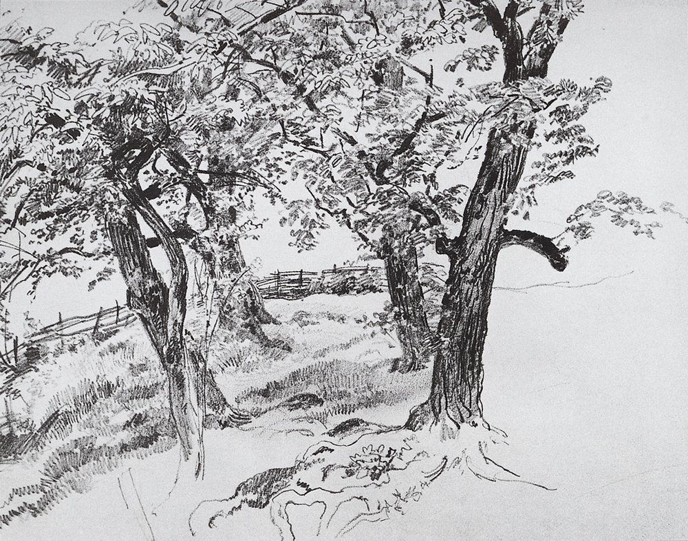 12. «Монотопия» - (отпечаток)- лист бумаги складывается пополам, затем разворачивается, краска (гуашь) наносится на одну половину листа — создаётся пейзаж. После чего лист снова складывается и отпечатывается, получается как бы зеркальное изображение. После получения оттиска исходный рисунок оживить красками повторно, чтобы он имел более чёткие контуры, чем его отражение на водной глади водоёма. Отражение на воде вновь подкрашивать не нужно, оно остаётся слегка размытым.