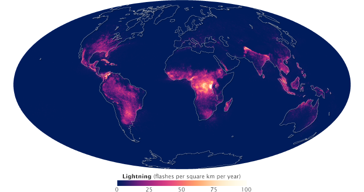 На карте молний вы также можете увидеть небольшие вспышки молнии, которые обозначаются короткой белой вспышкой. Каждая из этих вспышек сигнализирует об одном ударе молнии.