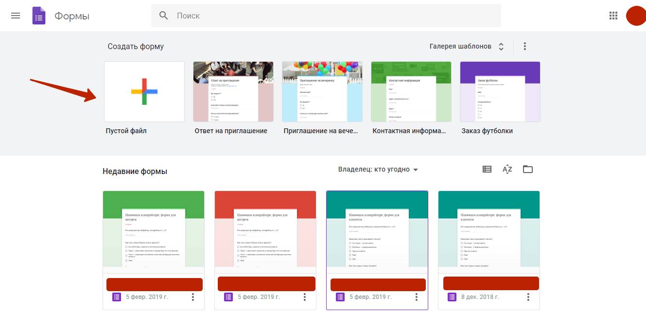 - Создайте пустую форму или используйте один из предоставленных шаблонов.