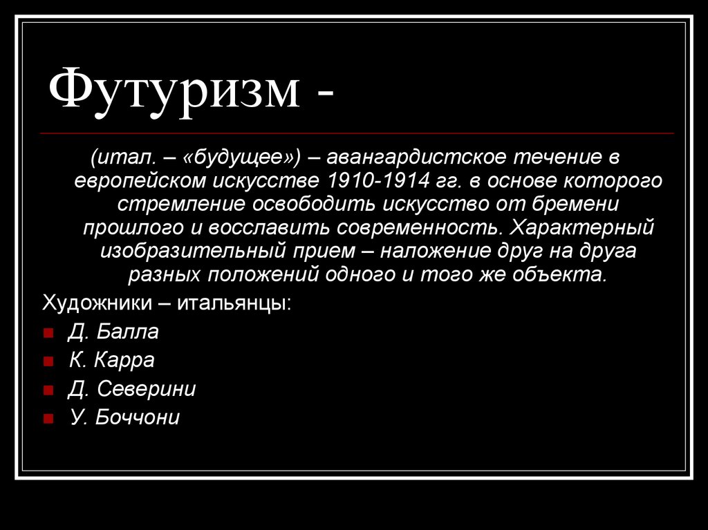 Конспект урока литературы в 11 классе «Футуристы и футуризм»