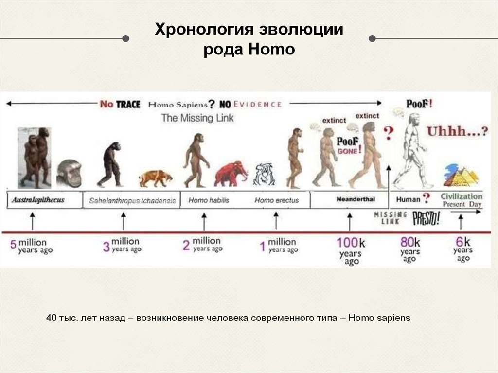 - 200,00-300,000 лет назад: эволюционировали Homo sapiens, ранние предки человека.
