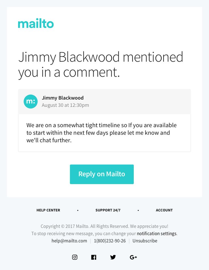 Mailto позволяет посетителям вашего сайта быстро и легко отправлять электронные письма на любой указанный вами адрес. Вы даже можете автоматически заполнить электронное письмо получателями CC и BCC, строкой темы и основным текстом.