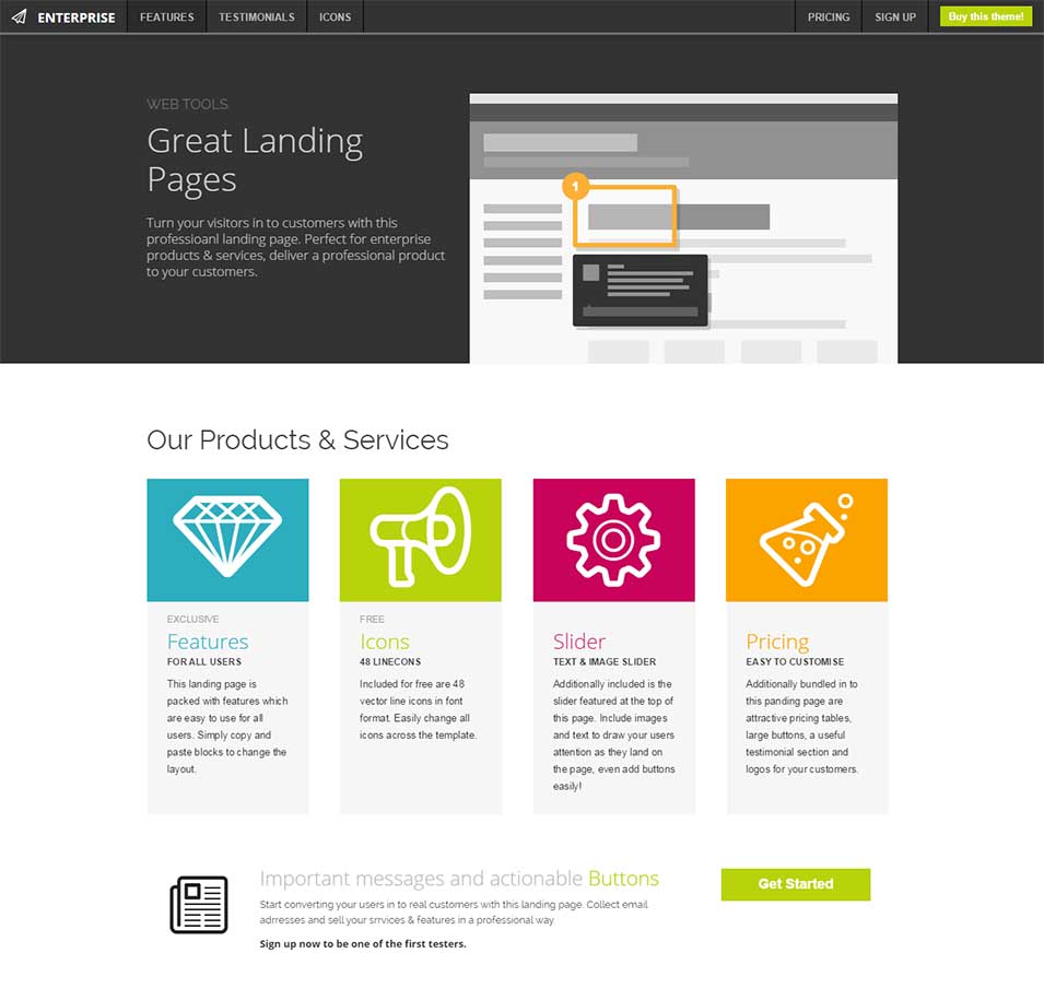 Используйте шаблон Appstore для создания страниц рекламы приложений и для их продажи. Вы можете изменять данный шаблон под ваши нужды. Шаблон очень очень хорошо сделан в плане юзабилити.