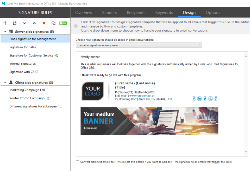 К счастью, вы не ограничены только цифрами. Вы также можете добавить HTML. Я добавил HTML из предыдущих примеров. Я также увеличил размер шрифта номера телефона, чтобы его было легче увидеть на изображениях.