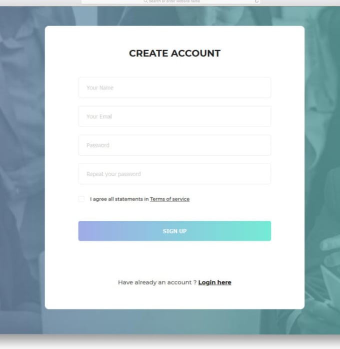 В этом уроке рассмотрим создание красивой формы регистрации html + css. Вот что должно у нас получиться: