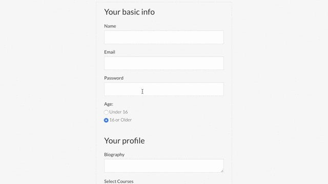 Если вам нужно запросить довольно много информации, но вы не хотите перегружать зрителя, вам подойдут пошаговые формы. Это позволяет разбивать и упрощать форму на каждом экране.
