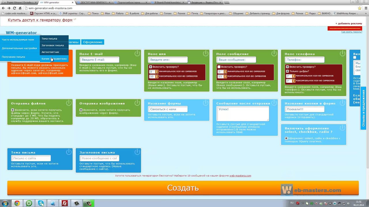 проверить Создать онлайн контактные формы, формы заказа, пользовательские формы