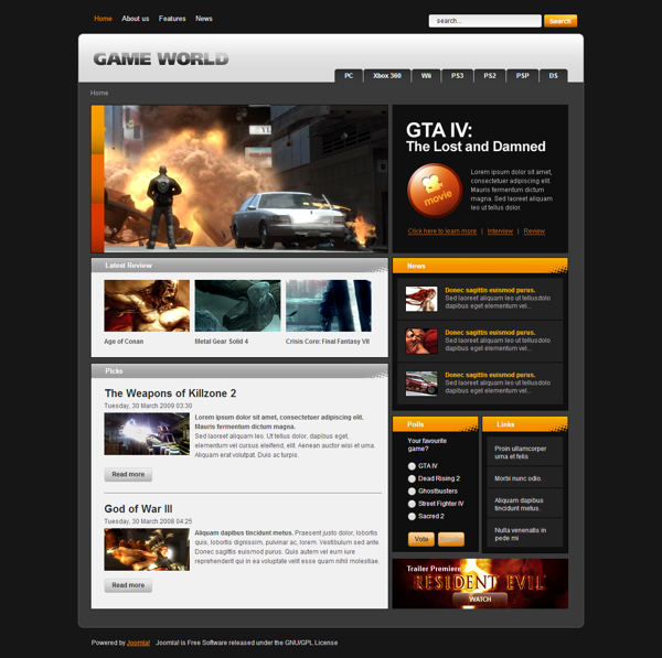 Дело в том, что какой бы увлекательной компьютерная игра не считалась, но сайт (шаблон игрового сайта если конкретнее) будет на первом месте у интернет-пользователя. Если дизайн сайта «супер-мега-крутой» игры будет выглядеть как «привет из прошлого века», то на нем никогда не будет много посетителей, как ни старайся. Здесь всегда будет главной оболочка, лицо сайта если хотите, а на втором месте интересный контент.
