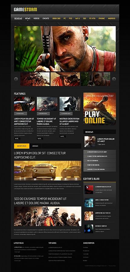 Создание сайта (игрового сайта) дело тонкое и здесь важно понимать психологию компьютерных игроков. Человеку, который раньше не имел дела с компьютерными играми, сложно понять что важно для игрока, а что наоборот не важно. Конечно, можно скачать бесплатный шаблон игрового сайта, натянуть его на первый попавшийся движок и казалось бы всё – дело в шляпе. Но это далеко не так. Стоит тщательно продумать каждую деталь дизайна: логотип, меню, картинки и фон.