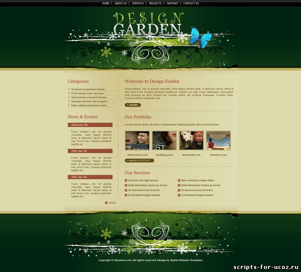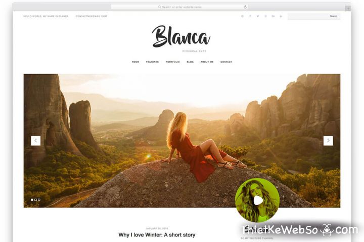 Цветовая гамма этого шаблона очень женственная и свежая.