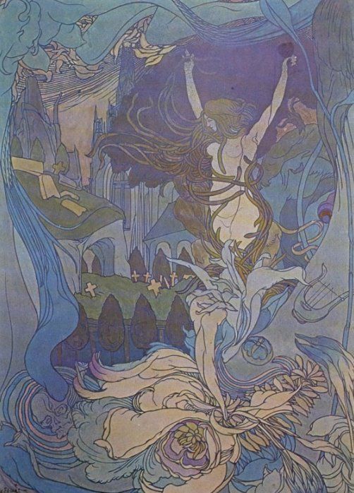 В атмосфере кризиса религиозного мировоззрения искусство стремилось стать новой религией, а художник — ее пророком. В поиске новых основ искусства и нового художественного языка символисты обратились к мистическим теориям и практикам. Посредством интуиции и фантазии символисты пытались расшифровать знаки потустороннего, «незримого» мира в мире реальном. Как сообщающиеся сосуды, символизм и модерн питали друг друга: идеи символизма нашли подобающую форму в пластике модерна.