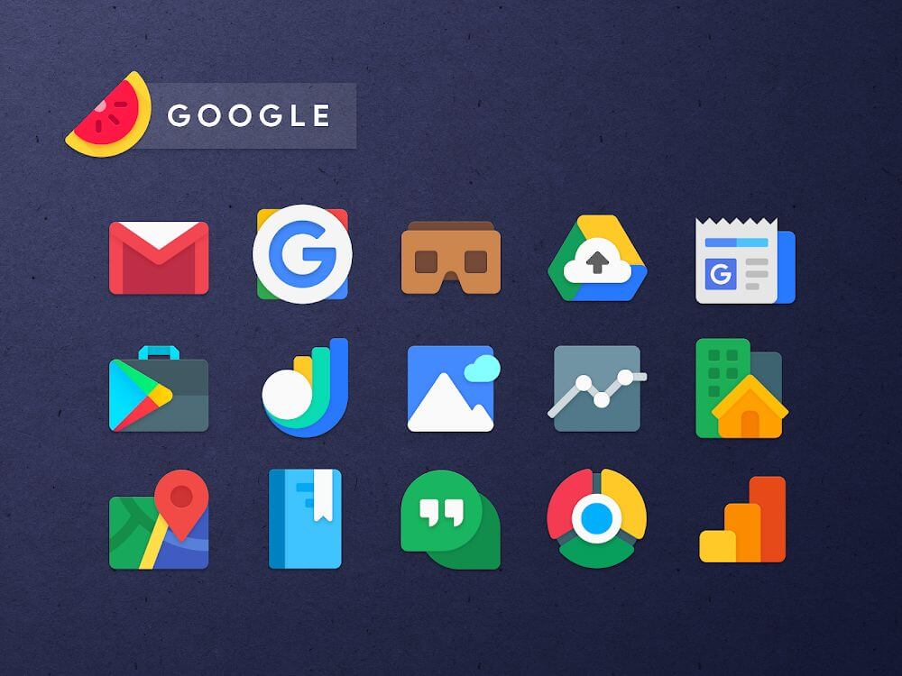 С более чем 1 миллионом установок Moonshine является одним из самых популярных наборов значков на данный момент. Иконки в этом пакете, как видите, имеют приятный дизайн с яркими цветами и четкими краями. Они очень похожи на стандартные значки, поэтому идеально подходят для людей, которые не хотят слишком сильно отличаться от стандартного внешнего вида своего устройства. Несмотря на то, что Moonshine является одним из старейших пакетов значков на рынке, он по-прежнему активно поддерживается обновлениями, поэтому вам не нужно беспокоиться о проблемах совместимости.