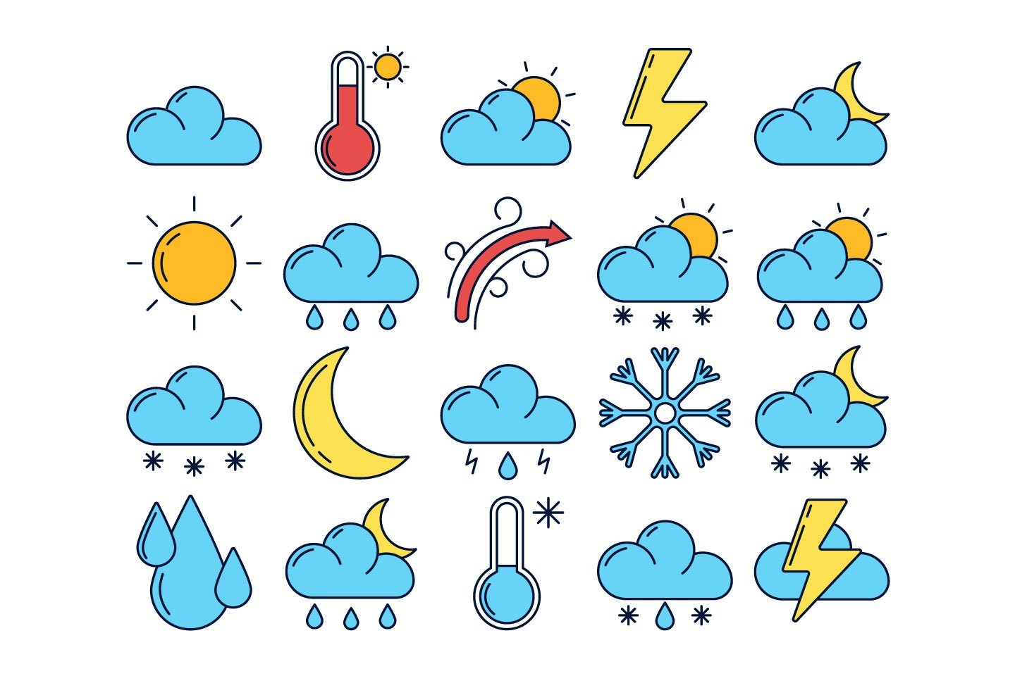 Иконки Погода: Солнце, облака, дождь и молнии (бесплатно) Вектор для бесплатного скачивания