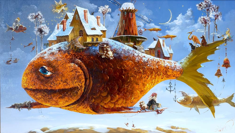 — Несмотря на то, что живете и работаете в Лондоне, в вашем инстаграме часто можно увидеть примеры работ, связанных с Россией и русской культурой. Так, работа с названием «Лукоморье», которую вы выполнили для Adobe Russia, буквально насыщена образами из пушкинского стихотворения, и при этом не завязывается на отечественных штампах — персонажи выглядят понятно и для отечественного зрителя, и для зарубежного.