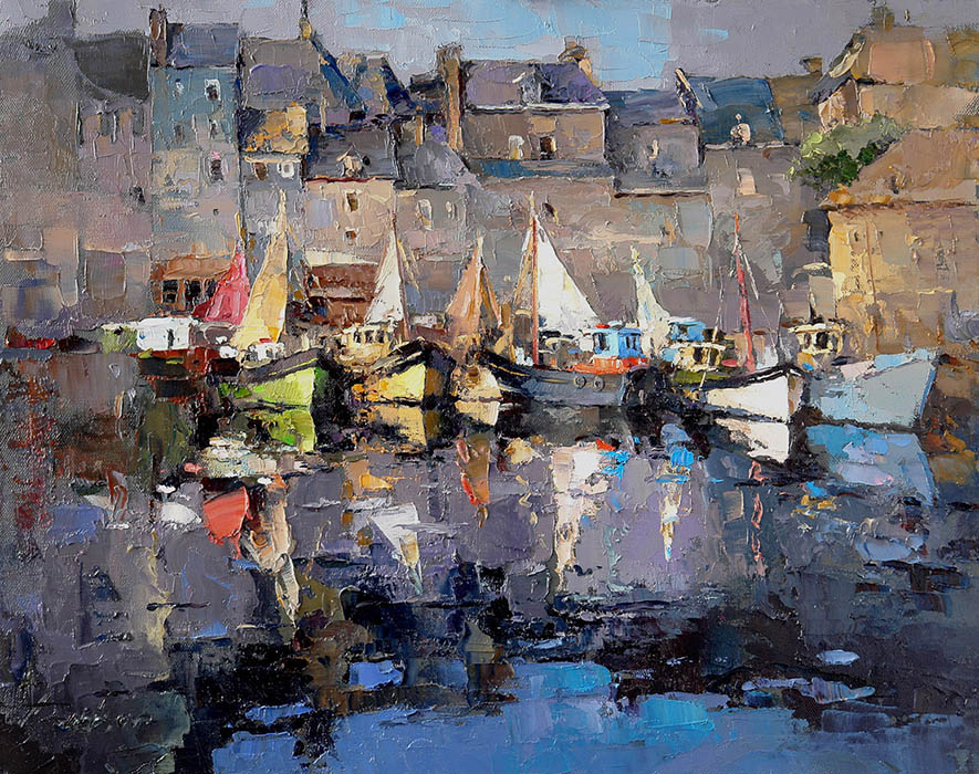 Свет, воздух, атмосферу картин он воплощает в присущем только ему стиле, с характерными узнаваемыми тонами и мазками.