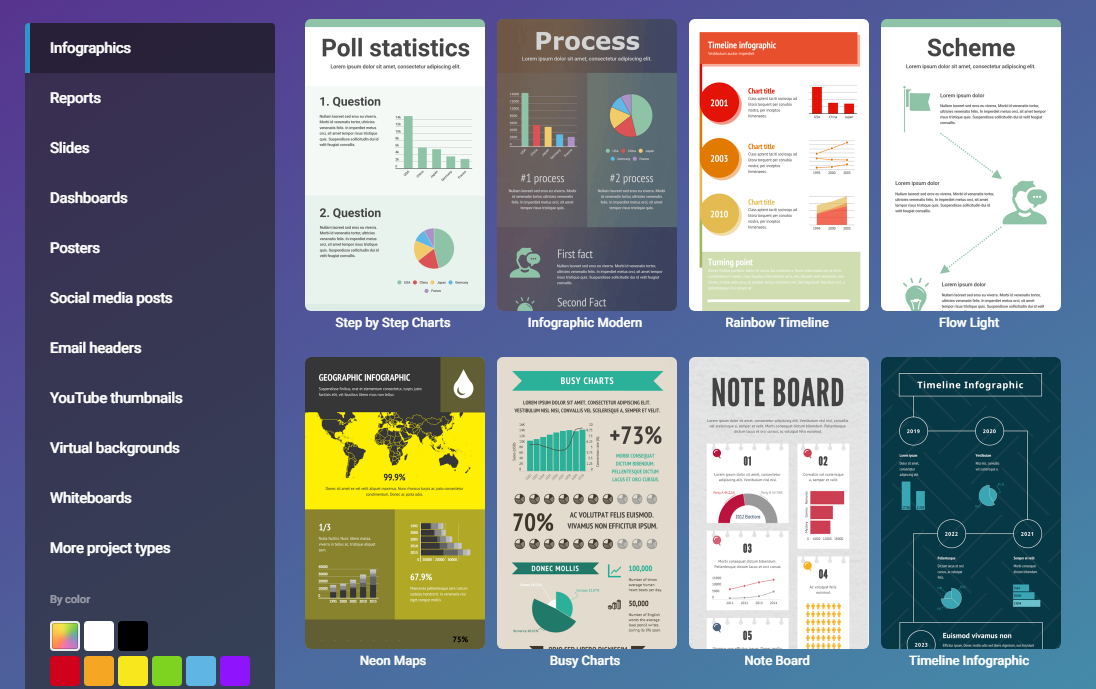 Venngage ΠΏΡΠ΅Π΄ΠΎΡΡΠ°Π²Π»ΡΠ΅Ρ Π½Π΅ΡΠΊΠΎΠ»ΡΠΊΠΎ ΡΠ°Π±Π»ΠΎΠ½ΠΎΠ² ΠΈΠ½ΡΠΎΠ³ΡΠ°ΡΠΈΠΊΠΈ, ΠΈ Ρ ΠΎΡΠΎΡΠ°Ρ Π½ΠΎΠ²ΠΎΡΡΡ Π·Π°ΠΊΠ»ΡΡΠ°Π΅ΡΡΡ Π² ΡΠΎΠΌ, ΡΡΠΎ ΡΠ°Π±Π»ΠΎΠ½Ρ ΠΏΡΠ΅Π΄Π½Π°Π·Π½Π°ΡΠ΅Π½Ρ Π΄Π»Ρ ΡΠ°Π·Π»ΠΈΡΠ½ΡΡ ΡΠΈΠΏΠΎΠ² ΠΈΠ½ΡΠΎΠ³ΡΠ°ΡΠΈΠΊΠΈ, Π²ΠΊΠ»ΡΡΠ°Ρ ΡΡΠ°ΡΠΈΡΡΠΈΡΠ΅ΡΠΊΠΈΠ΅, ΡΡΠ°Π²Π½ΠΈΡΠ΅Π»ΡΠ½ΡΠ΅, Π³Π΅ΠΎΠ³ΡΠ°ΡΠΈΡΠ΅ΡΠΊΠΈΠ΅, ΡΠ΅Π·ΡΠΌΠ΅, Π²ΡΠ΅ΠΌΠ΅Π½Π½ΡΡ ΡΠΊΠ°Π»Ρ ΠΈ ΡΠ°Π±Π»ΠΎΠ½Ρ ΠΏΡΠΎΡΠ΅ΡΡΠΎΠ².