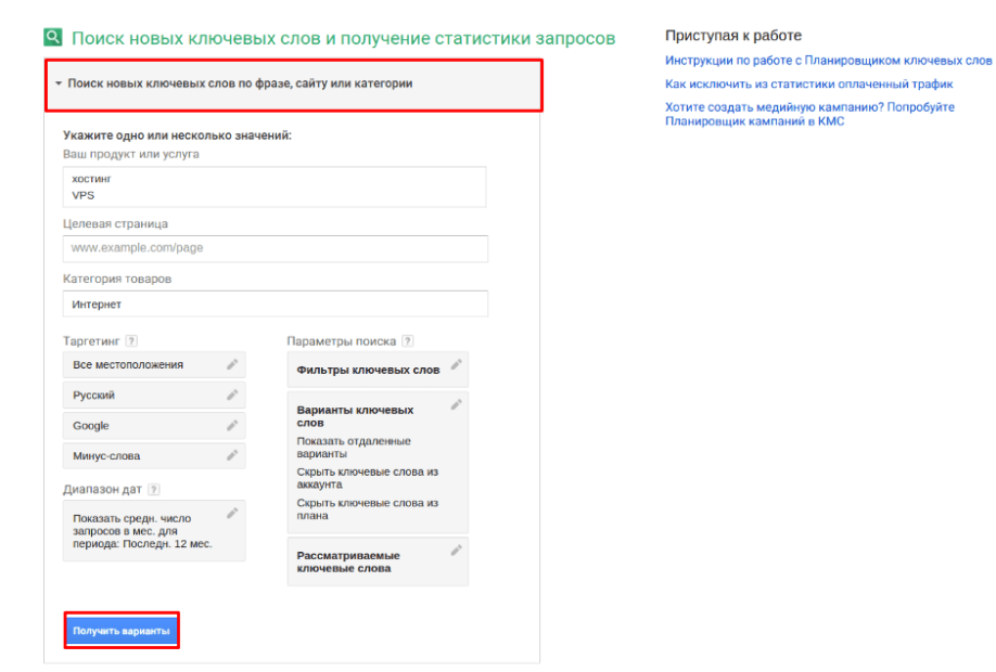 Начать использовать инструмент подсказки ключевых слов сейчас