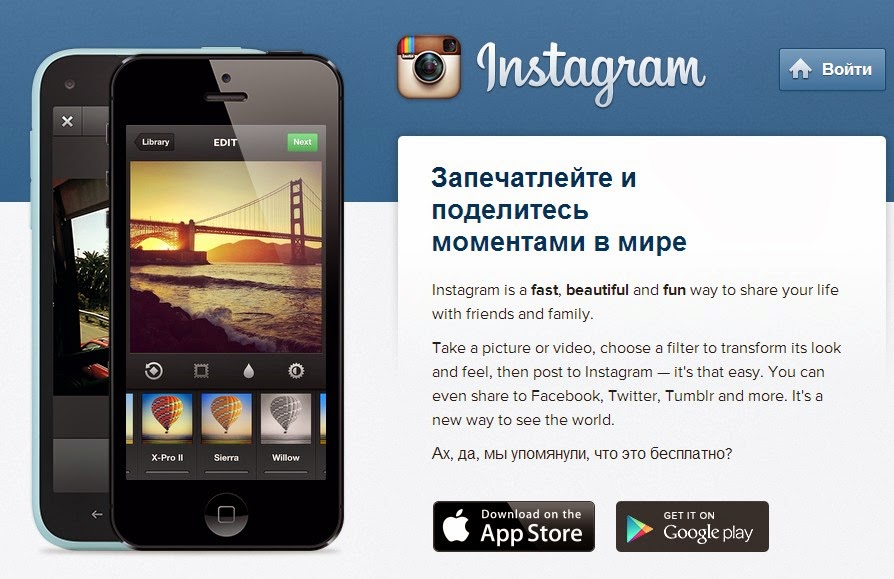 Что такое инстаграм? Наверное, это в первую очередь социальная сеть, в которой насчитывается уже сто миллионов активных пользователей. Чуть меньше, чем жителей в России. С другой стороны, Instagram это интуитивно понятный и простейший в использовании фоторедактор для мобильных устройств.