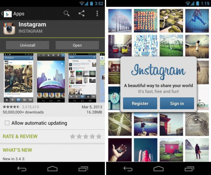 Но вернемся к регистрации в социальной сети Instagram. Собственно, при первом же запуске приложения вам и предложат на выбор — либо пройти регистрацию, либо войти под своими логином и паролем: