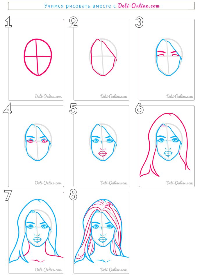 Начните с рисования овальной формы головы.