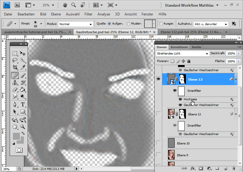 ΠΠΎΡ ΡΠΎΡΠΎ Π΄ΠΎ ΠΈ ΠΏΠΎΡΠ»Π΅ ΠΌΠ΅ΡΠΎΠ΄Π° Π½Π°Π»ΠΎΠΆΠ΅Π½ΠΈΡ. ΠΡ ΠΌΠΎΠΆΠ΅ΡΠ΅ ΠΏΡΠΎΡΠΌΠΎΡΡΠ΅ΡΡ ΡΠ²ΠΎΠΈ Π±Π΅Π»ΡΠ΅ ΠΈ ΡΠ΅ΡΠ½ΡΠ΅ ΠΎΠ±Π»Π°ΡΡΠΈ, ΠΏΠ΅ΡΠ΅ΠΊΠ»ΡΡΠΈΠ² ΡΠ΅ΠΆΠΈΠΌ ΡΠ»ΠΎΡ Ρ Overlay Π½Π° Normal. ΠΡΠΏΠΎΠ»ΡΠ·ΡΠΉΡΠ΅ ΠΊΠΈΡΡΡ Π±Π΅Π»ΠΎΠ³ΠΎ ΠΈΠ»ΠΈ ΡΠ΅ΡΠ½ΠΎΠ³ΠΎ ΡΠ²Π΅ΡΠ°, ΡΡΠΎΠ±Ρ ΠΎΡΡΠ΅Π΄Π°ΠΊΡΠΈΡΠΎΠ²Π°ΡΡ ΠΎΠ±Π»Π°ΡΡΠΈ ΠΎΡΠ²Π΅ΡΠ»Π΅Π½ΠΈΡ ΠΈ Π·Π°ΡΠ΅ΠΌΠ½Π΅Π½ΠΈΡ.