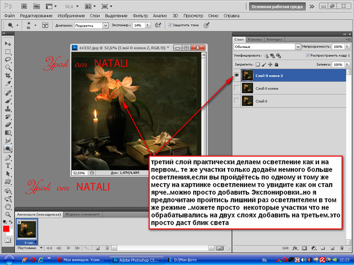 ΠΠΎΡ ΠΈ Π²ΡΠ΅! ΠΡ ΡΡΠΏΠ΅ΡΠ½ΠΎ Π²ΡΡΡΠ½ΡΡ ΡΠΊΠΎΡΡΠ΅ΠΊΡΠΈΡΠΎΠ²Π°Π»ΠΈ ΡΡΠΎΠ²Π΅Π½Ρ ΠΎΡΠ²Π΅ΡΠ΅Π½ΠΈΡ ΡΠ°Π·Π»ΠΈΡΠ½ΡΡ ΠΎΠ±Π»Π°ΡΡΠ΅ΠΉ ΡΠΎΡΠΎΠ³ΡΠ°ΡΠΈΠΈ Ρ ΠΏΠΎΠΌΠΎΡΡΡ ΡΠ΅ΡΠ½ΠΎΠ³ΠΎ ΠΈΠ»ΠΈ Π±Π΅Π»ΠΎΠ³ΠΎ ΡΠ²Π΅ΡΠΎΠ². ΠΡΠΎ Π΄Π°Π΅Ρ Π½Π°ΠΌ ΡΠ΅Π·ΡΠ»ΡΡΠ°Ρ ΠΎΡΠ΅Π½Ρ ΠΏΠΎΡ ΠΎΠΆΠΈΠΉ Π½Π° ΡΠΎ, ΡΠ΅Π³ΠΎ ΠΌΡ ΠΌΠΎΠ³Π»ΠΈ Π±Ρ Π΄ΠΎΡΡΠΈΡΡ Ρ ΠΏΠΎΠΌΠΎΡΡΡ ΠΈΠ½ΡΡΡΡΠΌΠ΅Π½ΡΠΎΠ² Β«ΠΡΠ²Π΅ΡΠ»Π΅Π½ΠΈΠ΅Β» ΠΈ Β«ΠΠ°ΡΠ΅ΠΌΠ½Π΅Π½ΠΈΠ΅Β», ΠΏΡΠΈ ΡΡΠΎΠΌ ΠΌΡ Π½Π΅ ΠΈΠ·ΠΌΠ΅Π½ΠΈΠ»ΠΈ Π½ΠΈ ΠΎΠ΄ΠΈΠ½ ΠΏΠΈΠΊΡΠ΅Π»Ρ ΠΎΡΠΈΠ³ΠΈΠ½Π°Π»ΡΠ½ΠΎΠ³ΠΎ ΠΈΠ·ΠΎΠ±ΡΠ°ΠΆΠ΅Π½ΠΈΡ!