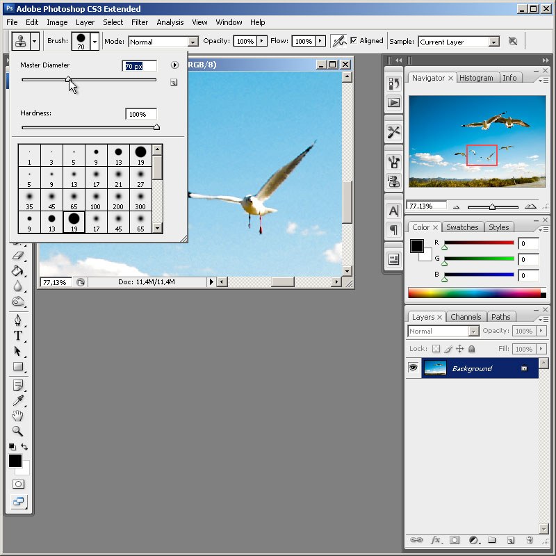 3. ΠΡΠ±Π΅ΡΠΈΡΠ΅ ΠΈΠ½ΡΡΡΡΠΌΠ΅Π½Ρ Β«ΠΠΈΡΡΡΒ» ΠΈ ΡΠ΅Π»ΠΊΠ½ΠΈΡΠ΅ ΠΏΡΠ°Π²ΠΎΠΉ ΠΊΠ½ΠΎΠΏΠΊΠΎΠΉ ΠΌΡΡΠΈ ΠΈΠ·ΠΎΠ±ΡΠ°ΠΆΠ΅Π½ΠΈΠ΅, ΡΡΠΎΠ±Ρ ΠΎΡΠΊΡΡΡΡ ΠΏΠ°ΡΠ°ΠΌΠ΅ΡΡΡ ΠΊΠΈΡΡΠΈ. Π²ΡΠ±Π΅ΡΠΈΡΠ΅ ΠΊΡΡΠ³Π»ΡΡ ΠΌΡΠ³ΠΊΡΡ ΠΊΠΈΡΡΡ. ΠΡΡΠ΅Π³ΡΠ»ΠΈΡΡΠΉΡΠ΅ ΡΠ°Π·ΠΌΠ΅Ρ ΡΠ°ΠΊ, ΠΊΠ°ΠΊ Π²Π°ΠΌ ΡΠ΄ΠΎΠ±Π½ΠΎ. ΠΠΎΡ ΠΊΠΈΡΡΡ ΠΈΠΌΠ΅Π΅Ρ ΡΠ°Π·ΠΌΠ΅Ρ 354 ΠΏΠΈΠΊΡΠ΅Π»Ρ, Π° ΠΌΠΎΠ΅ ΠΈΠ·ΠΎΠ±ΡΠ°ΠΆΠ΅Π½ΠΈΠ΅ ΠΈΠΌΠ΅Π΅Ρ ΡΠ°Π·ΠΌΠ΅Ρ A4. ΠΡΠ³ΠΊΠ°Ρ ΠΊΠΈΡΡΡ ΠΏΠΎΠ·Π²ΠΎΠ»ΠΈΡ ΡΠΎΠ·Π΄Π°ΡΡ ΠΏΠ»Π°Π²Π½ΡΠΉ ΡΡΡΠ΅ΠΊΡ ΠΎΡΠ²Π΅ΡΠ»Π΅Π½ΠΈΡ, Π° Π½Π΅ ΡΠ»ΠΈΡΠΊΠΎΠΌ Π±ΠΎΠ»ΡΡΠΎΠΉ ΠΊΠΎΠ½ΡΡΠ°ΡΡ ΠΌΠ΅ΠΆΠ΄Ρ ΡΠ²Π΅ΡΠΎΠΌ ΠΈ ΡΠ΅Π½ΡΠΌΠΈ.