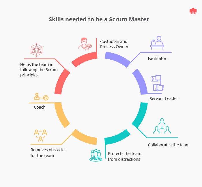 Например, в Scrum: 1) Product Owner следит за тем, чтобы делать правильный продукт; 2) Scrum Master следит за тем, чтобы продукт делался правильно, 3) Разработчик делает продукт.