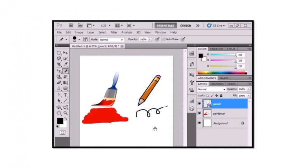 - Инструмент «Карандаш» — еще один инструмент рисования в Photoshop. Но в то время как инструмент «Кисть» может рисовать мазки с мягкими краями, инструмент «Карандаш» всегда рисует с жесткими краями.
