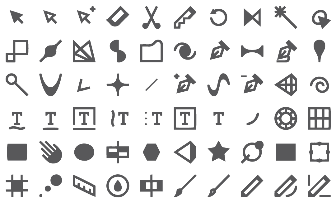 Большинство инструментов, которые мы изначально видим в панели инструментов имеют панели, на которых скрыты дополнительные инструменты. В данной версии программы, единственным инструментом, не имеющих под собой дополнительных инструментов, является «Масштаб» (Zoom Tool), расположенный в самом низу. Для просмотра дополнительных инструментов, нажмите правой клавишей мыши на любую из иконок инструментов (за исключением «Масштаба»). При этом откроется дополнительный список сгруппированных с ним инструментов.