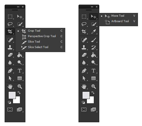 В группе находятся два инструмента, «Перемещение» (Move Tool) и «Монтажная область» (Artboard Tool)