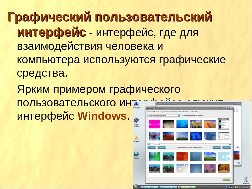Графический пользовательский интерфейс, наиболее известный своей реализацией в операционных системах Macintosh компании Apple Inc. и Windows корпорации Microsoft, заменил загадочные и сложные текстовые интерфейсы более ранних вычислений относительно интуитивно понятной системой, которая сделала работу с компьютером не только более легкой для освоения, но и более приятной. и естественно. Графический интерфейс теперь является стандартным компьютерным интерфейсом, а его компоненты сами по себе стали безошибочными культурными артефактами.