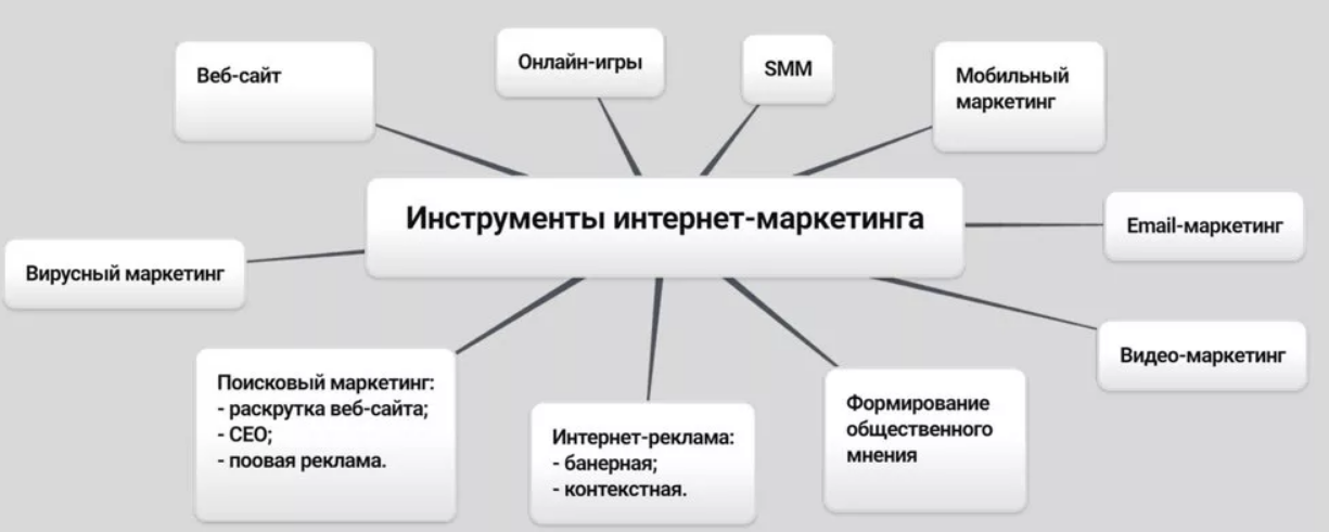 ΠΠΎΠΌΠΏΠ»Π΅ΠΊΡΠ½ΡΠΉ ΠΈΠ½ΡΠ΅ΡΠ½Π΅Ρ-ΠΌΠ°ΡΠΊΠ΅ΡΠΈΠ½Π³ Π²ΠΊΠ»ΡΡΠ°Π΅Ρ Π² ΡΠ΅Π±Ρ Π²ΡΠ΅ ΠΊΠ°Π½Π°Π»Ρ ΠΈ ΡΠΏΠΎΡΠΎΠ±Ρ ΠΏΡΠΎΠ΄Π²ΠΈΠΆΠ΅Π½ΠΈΡ ΡΠΎΠ²Π°ΡΠΎΠ², ΡΡΠ»ΡΠ³ ΠΈ Π±ΡΠ΅Π½Π΄Π° Π² ΡΠ΅ΡΠΈ.Β Π ΠΈΡ ΡΠΈΡΠ»ΠΎ Π²Ρ ΠΎΠ΄ΡΡ: ΡΠ°ΠΉΡ ΠΊΠΎΠΌΠΏΠ°Π½ΠΈΠΈ,Β ΠΏΠΎΠΈΡΠΊΠΎΠ²Π°Ρ ΠΎΠΏΡΠΈΠΌΠΈΠ·Π°ΡΠΈΡ (SEO),Β ΠΌΠ΅Π΄ΠΈΠΉΠ½Π°Ρ, ΠΊΠΎΠ½ΡΠ΅ΠΊΡΡΠ½Π°Ρ ΠΈ ΡΠ°ΡΠ³Π΅ΡΠΈΡΠΎΠ²Π°Π½Π½Π°Ρ ΡΠ΅ΠΊΠ»Π°ΠΌΠ°, ΡΠ°Π·Π²ΠΈΡΠΈΠ΅ ΡΠΎΠΎΠ±ΡΠ΅ΡΡΠ² Π² ΡΠΎΡΠΈΠ°Π»ΡΠ½ΡΡ ΡΠ΅ΡΡΡ , ΡΠ°Π±ΠΎΡΠ° Π½Π°Π΄ ΡΠ΅ΠΏΡΡΠ°ΡΠΈΠ΅ΠΉ, ΠΊΠΎΠ½ΡΠ΅Π½Ρ-ΠΌΠ°ΡΠΊΠ΅ΡΠΈΠ½Π³.